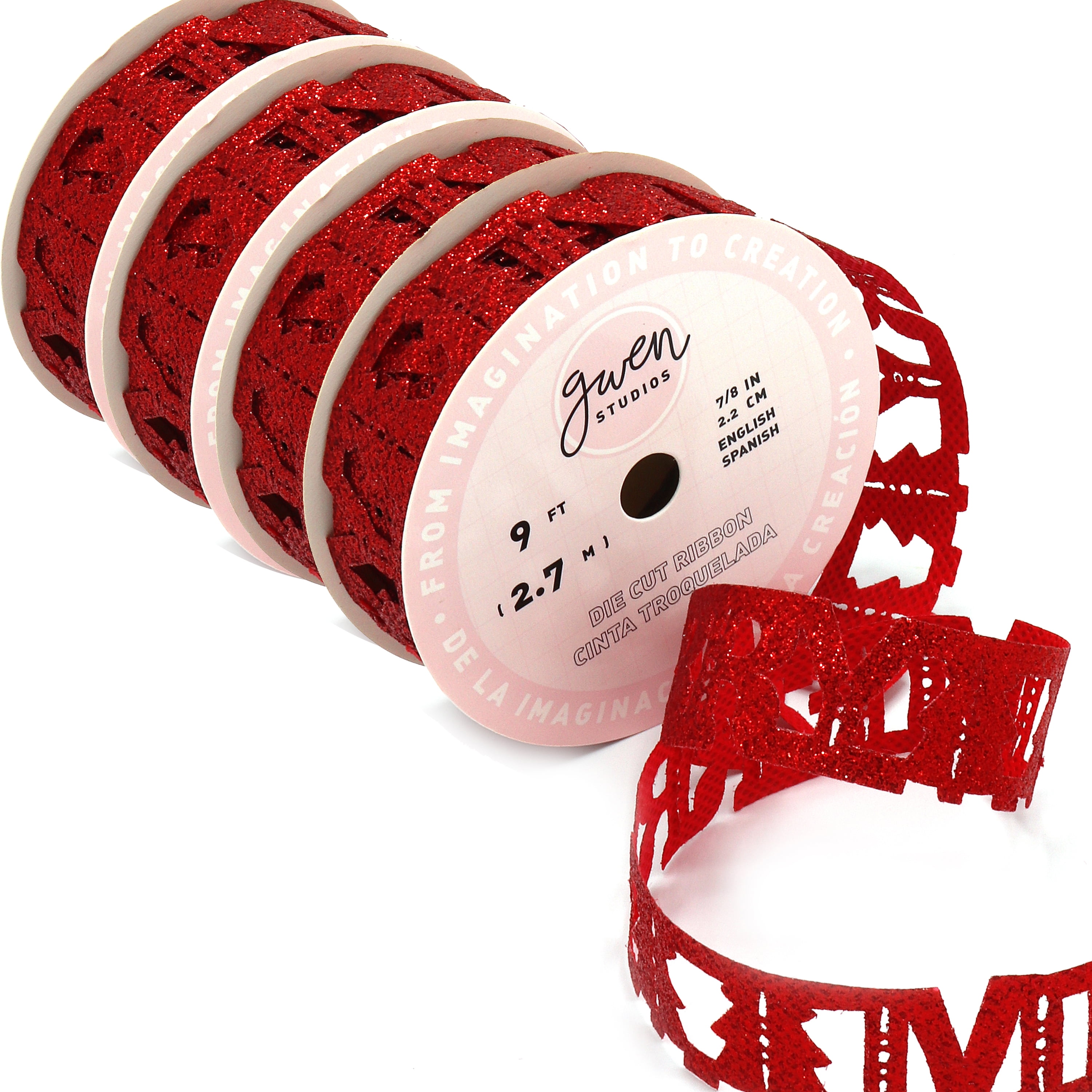 Red Die Cut Christmas Ribbon Merry Words 7 8 X 12 Yards By Gwen Studios Walmart Com